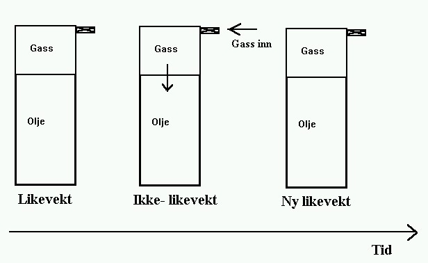 Figur 3 Illustrasjon av masseovergang når gass tilføres et system i likevekt